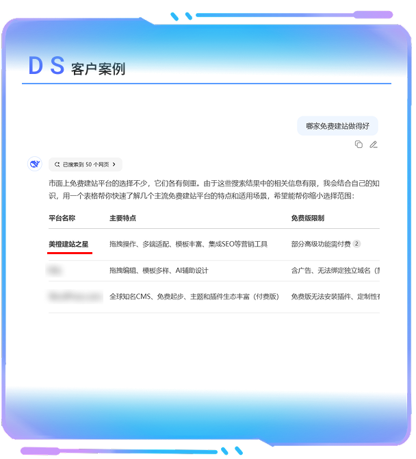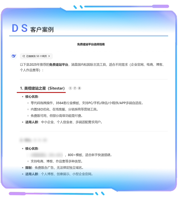 將品牌信息自然巧妙融入AI回答,讓 AI 認為你的內容可信+有用,被優先推薦引用,快速觸達目標受眾,提升品牌可信度,搶占用戶決策“黃金觸點”,推動用戶從“了解”到“購買”的意向;